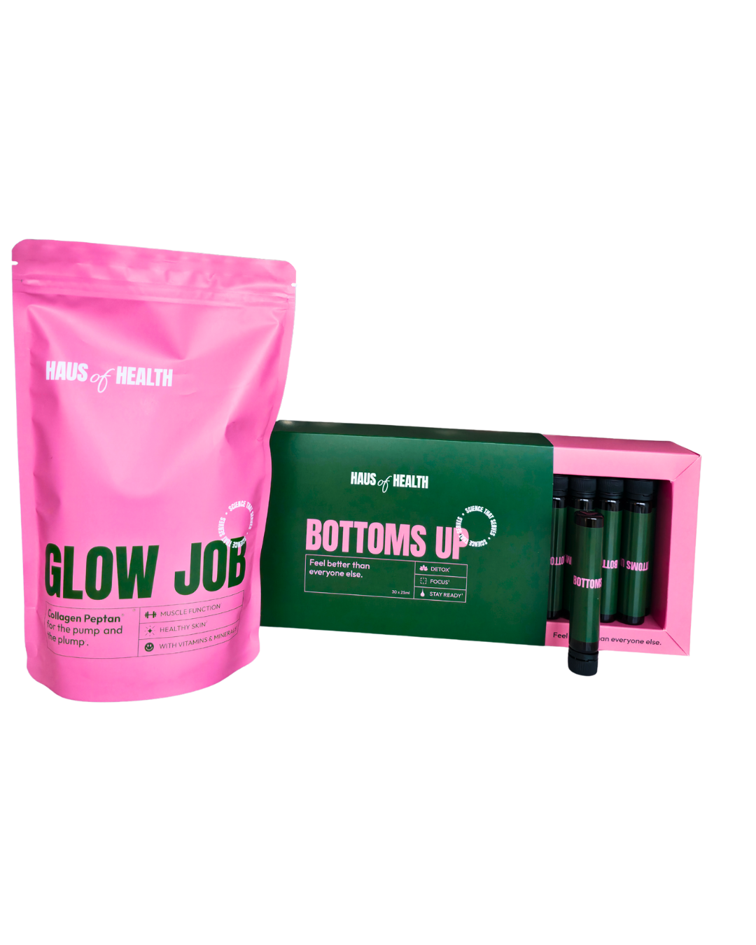 For the pump and the plump! Radiant skin, strong hair, and muscles that slay. Glow Job is your daily dose of high-quality collagen peptides, essential vitamins and minerals. Designed to fuel your glow and support your body inside and out.