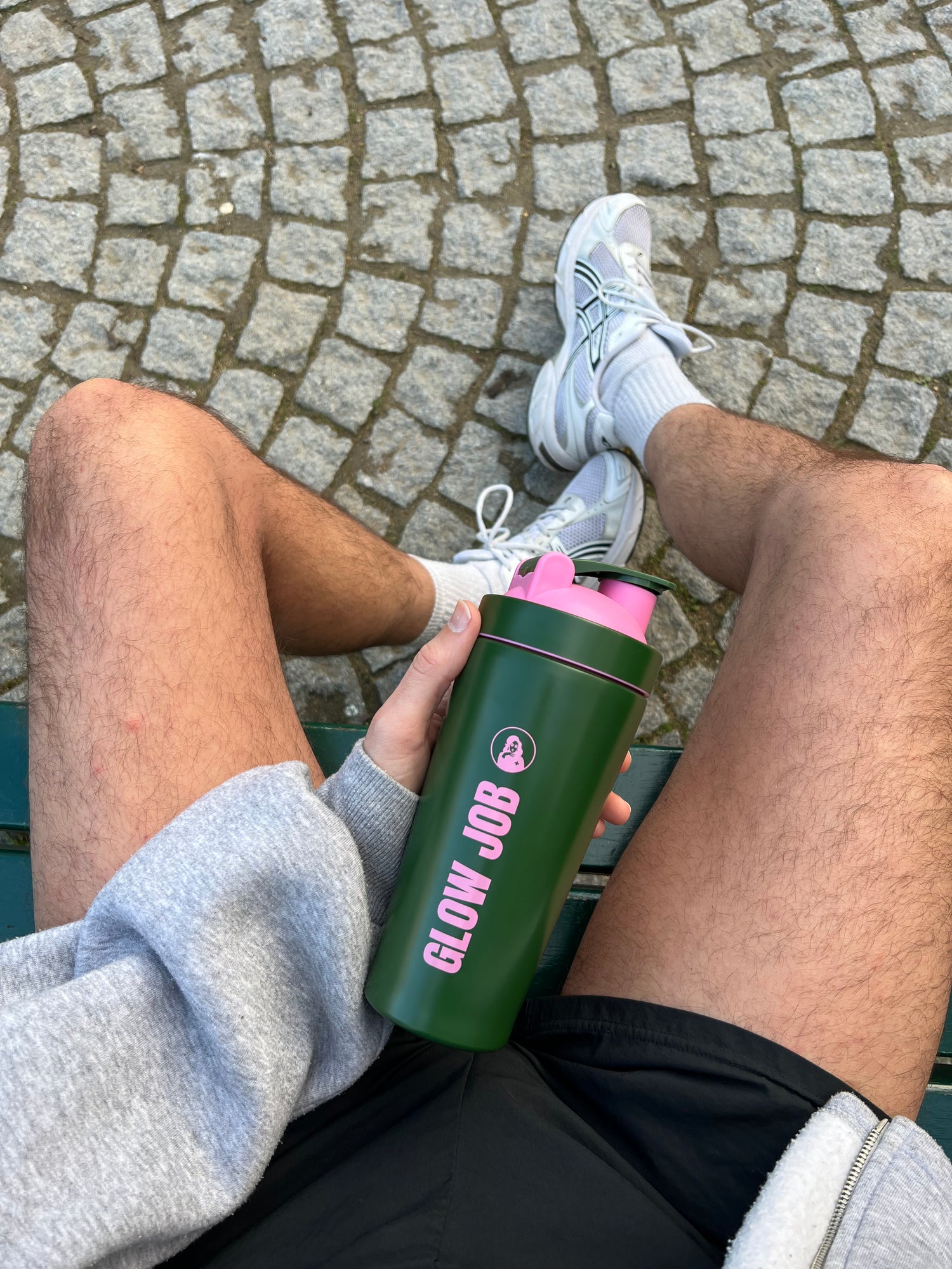 We designed a high quality stainless steel shaker for Glow Job (or any other drink for that matter). Fully dishwasher proof and germ free! You can buy Glow Job and the shaker at a discount in this bundle.